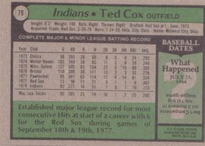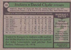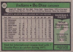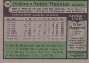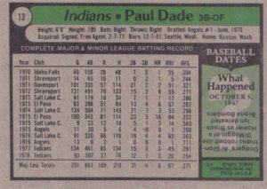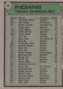 1979 Cleveland Indians #13 Paul Dade#13 Paul Dade (b)#38 Bernie Carbo#38 Bernie Carbo (b)#61 Bo Diaz#61 Bo Diaz (b)#77 Dan Briggs#77 Dan Briggs (b)#79 Ted Cox#79 Ted Cox (b)#96 Indians Checklist#96 Indians Checklist (b)#122 Mike Paxton#122 Mike Paxton (b)#146 Duane Kuiper#146 Duane Kuiper (b)#150 Wayne Cage#150 Wayne Cage (b)#168 Dave Freisleben#168 Dave Freisleben (b)#226 Ron Pruitt#226 Ron Pruitt (b)#253 Rick Wise#253 Rick Wise (b)#280 Andre Thornton#280 Andre Thornton (b)#307 Larvell Blanks#307 Larvell Blanks (b)#332 Gary Alexander#332 Gary Alexander (b)#339 David Clyde#339 David Clyde (b)#359 Dan Spillner#359 Dan Spillner (b)#425 Rick Manning#425 Rick Manning (b)#438 Horace Speed#438 Horace Speed (b)#459 Sid Monge#459 Sid Monge (b)#484 Rick Waits#484 Rick Waits (b)#511 Paul Reuschel#511 Paul Reuschel (b)#537 Tom Veryzer#537 Tom Veryzer (b)#573 Jim Kern#573 Jim Kern (b)#611 Jim Norris#611 Jim Norris (b)#636 Wayne Garland#636 Wayne Garland (b)#667 Don Hood#667 Don Hood (b)#690 Buddy Bell#690 Buddy Bell (b)#705 Indians Prospects#705 Indians Prospects (b)