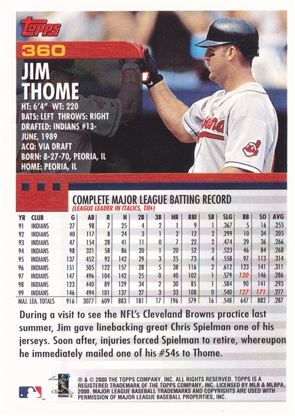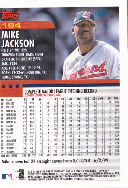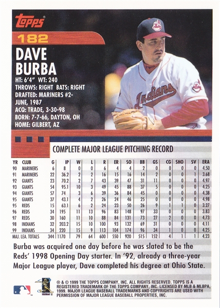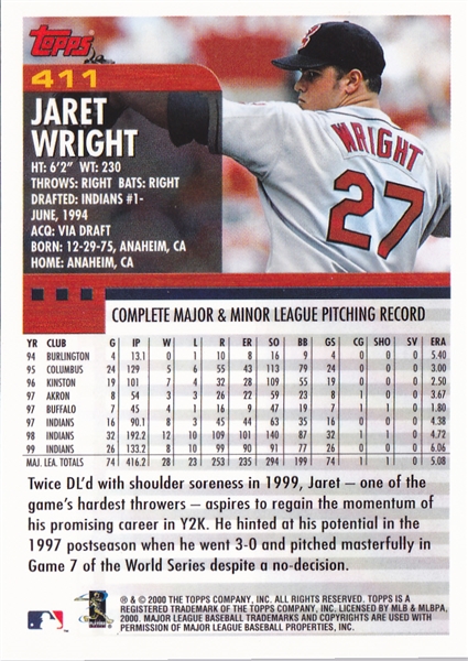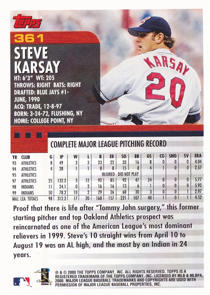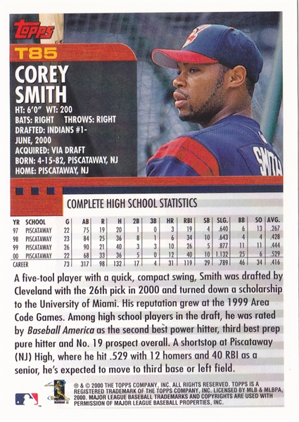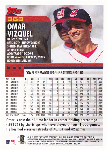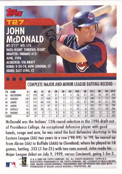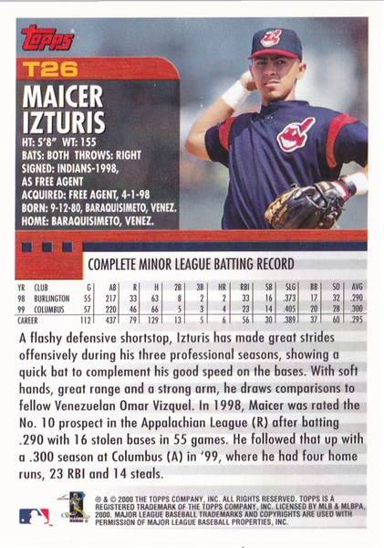 2000 Topps Cleveland Indians Team Set