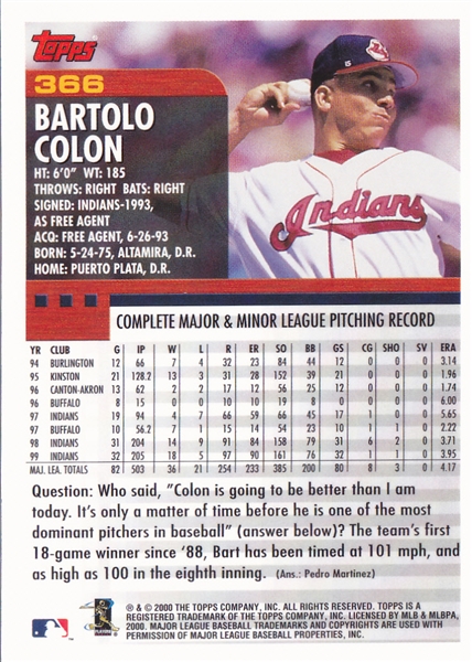 #366 Bartolo Colon (back)