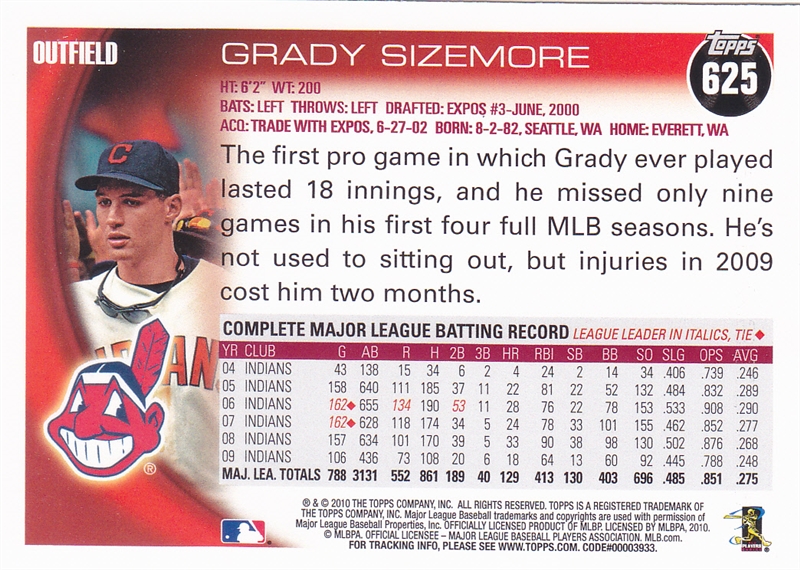 2010 Topps Cleveland Indians #67 Matt Laporta#67 Matt Laporta (b)#109 Justin Masterson#109 Justin Masterson (b)#164 Carlos Carrasco#164 Carlos Carrasco (b)#178 Kerry Wood#178 Kerry Wood (b)#197 Cleveland Indians#197 Cleveland Indians (b)#211 Kelly Shoppach#211 Kelly Shoppach (b)#243 Asdrubal Cabrera#243 Asdrubal Cabrera (b)#270 Michael Brantley#270 Michael Brantley (b)#287 Johnny Peralta#287 Johnny Peralta (b)#369 Jake Westbrook#369 Jake Westbrook (b)#418 Aaron Laffey#418 Aaron Laffey (b)#420 Shi-Soo Choo#420 Shi-Soo Choo (b)#467 Fausto Carmona#467 Fausto Carmona (b)#505 Andy Marte#505 Andy Marte (b)#525 David Huff#525 David Huff (b)#538 Travis Hafner#538 Travis Hafner (b)#617 Luis Valbuena#617 Luis Valbuena (b)#622 Cleveland Indian#622 Cleveland Indians (b)#625 Grady Sizemore#625 Grady Sizemore (b)#646 Trevor Crowe#646 Trevor Crowe (b)#US59 Jeanmar Gomez#US59 Jeanmar Gomez (b)#US89 Frank Herrmann#US89 Frank Herrmann (b)#US212 Mitch Talbot#US212 Mitch Talbot (b)#US242 Shelly Duncan#US242 Shelly Duncan (b)#US244 Mike Redmond#US244 Mike Redmond (b)#US254 Chris Perez#US254 Chris Perez (b)#US307 Carlos Santana#US307 Carlos Santana (b)#US319 Josh Tomlin#US319 Josh Tomlin (b)#US321 Jason Donald#US321 Jason Donald (b)#US330 Carlos Santana#US330 Carlos Santana (b)