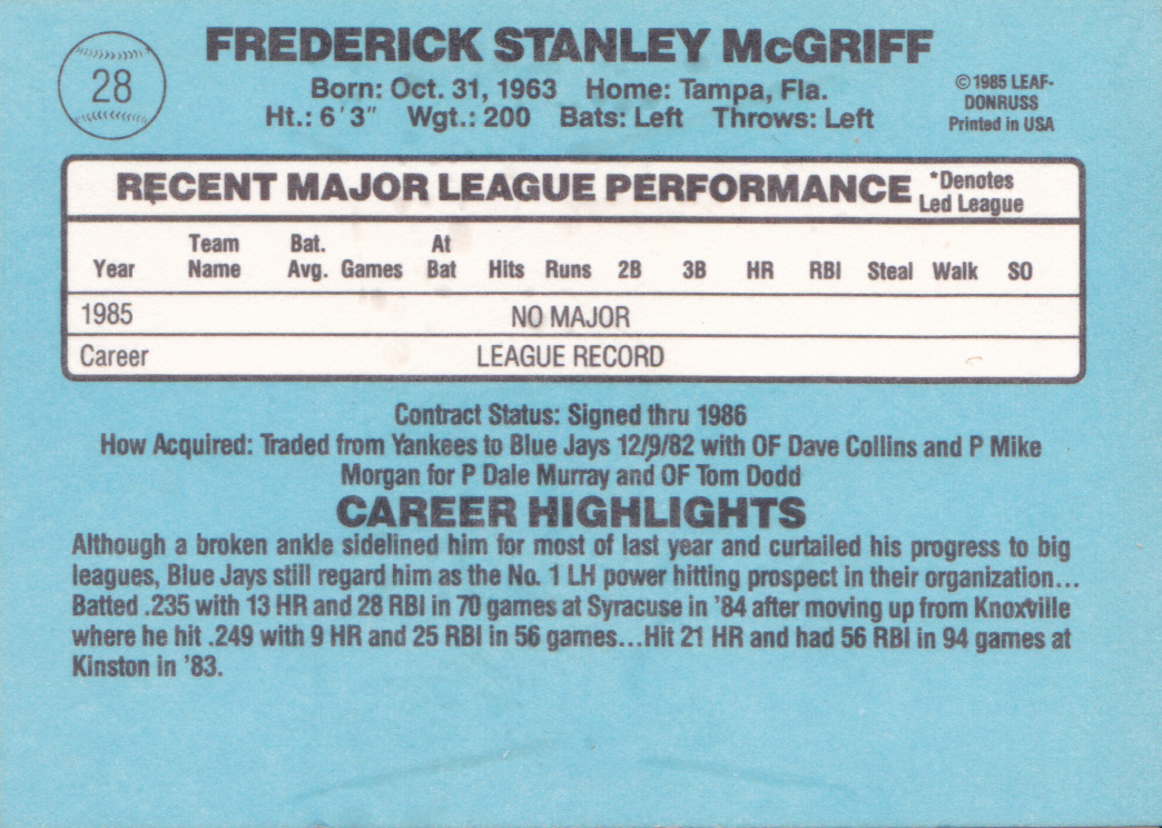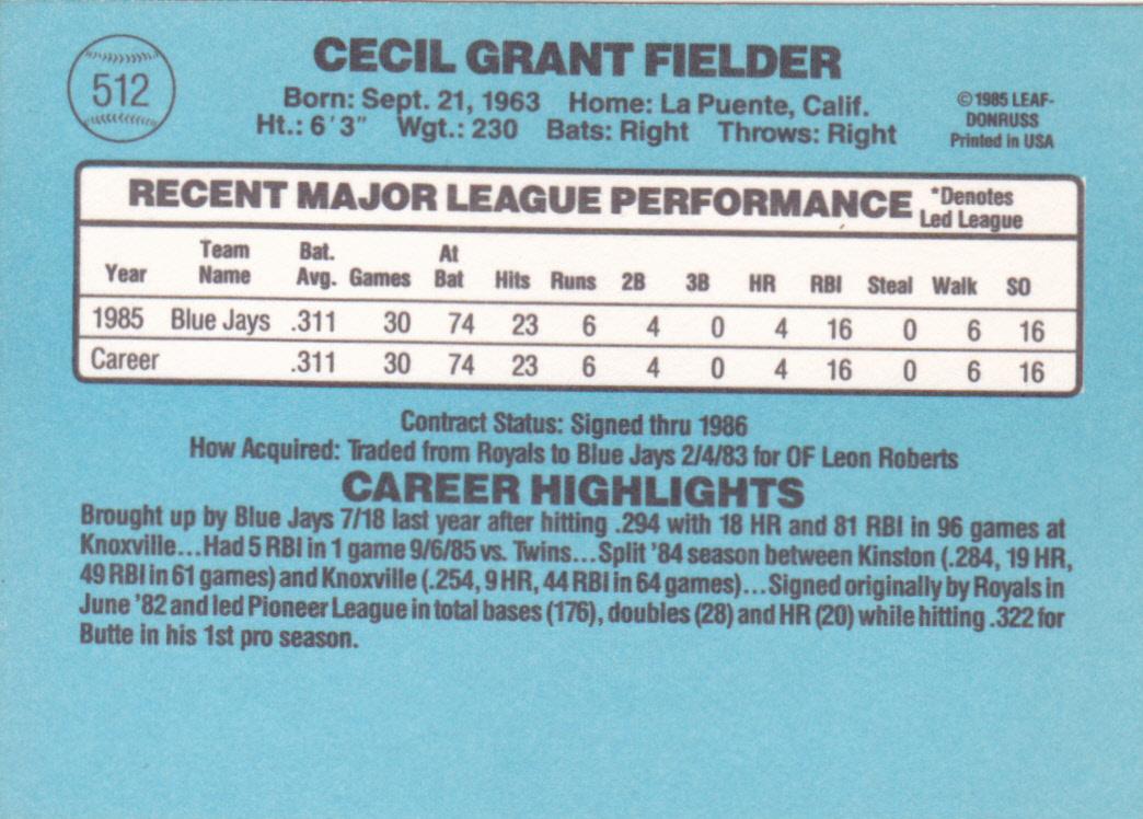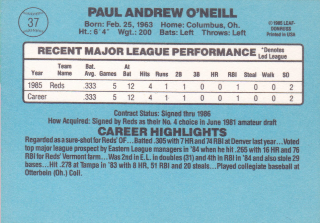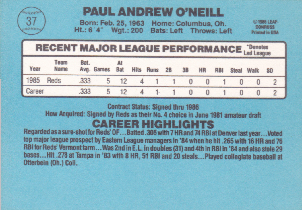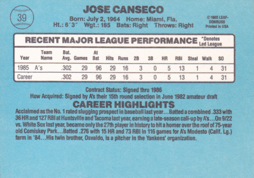 The popularity of the set was driven by the Jose Canseco rookie–one of the more iconic cards of the decade. It also had Rated Rookies of Fred McGriff, Paul O’Neill, and Andres Galarraga. Not sure I can say that I made good on the investment, but I have no regrets buying it.