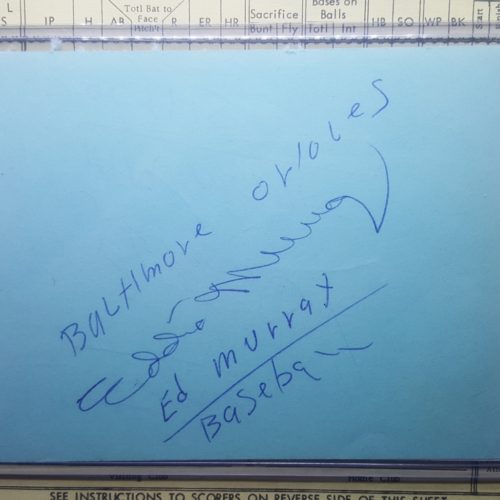 I was pretty jazzed to get these Carl Yastrzemski and Eddie Murray autographs. Both are signed on what looks like autograph book paper, and in both cases with a bold, blue ballpoint pen.