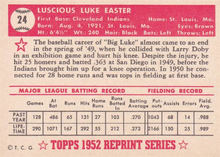 1952 Topps Cleveland Indians Team Set Posted on July 23, 2019 • Posted Under • No Comments #10 Al Rosen#10 Al Rosen (b)#17 James Hegan#17 James Hegan (b)#18 Merrill Combs#18 Merrill Combs (b)#24 Luke Easter#24 Luke Easter (b)#55 Ray Boone#55 Ray Boone (b)#77 Bob Kennedy#77 Bob Kennedy (b)#88 Bob Feller#88 Bob Feller (b)#92 Dale Mitchell#92 Dale Mitchell (b)#120 Bob Chakales#120 Bob Chakales (b)#189 Pete Reiser#189 Pete Reiser (b)#193 Harry Simpson#193 Harry Simpson (b)#199 George Zuverink#199 George Zuverink (b)#207 Mickey Harris#207 Mickey Harris (b)#217 George Stirnweiss#217 George Stirnweiss (b)#243 Larry Doby#243 Larry Doby (b)#253 John Berardino#253 John Berardino (b)#257 Bobby Avila#257 Bobby Avila (b)#258 Steve Gromek#258 Steve Gromek (b)#268 Bob Lemon#268 Bob Lemon (b)#270 Lou Brissie#270 Lou Brissie (b)#272 Mike Garcia#272 Mike Garcia (b)#277 Early Wynn#277 Early Wynn (b)#282 George Tebbetts#282 George Tebbetts (b)#300 Barney McCosky#300 Barney McCosky (b)#363 Dick Rozek#363 Dick Rozek (b)#382 Sam Jones#382 Sam Jones (b)#399 Jim Fridley#399 Jim Fridley (b)