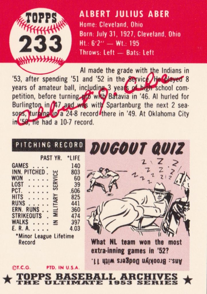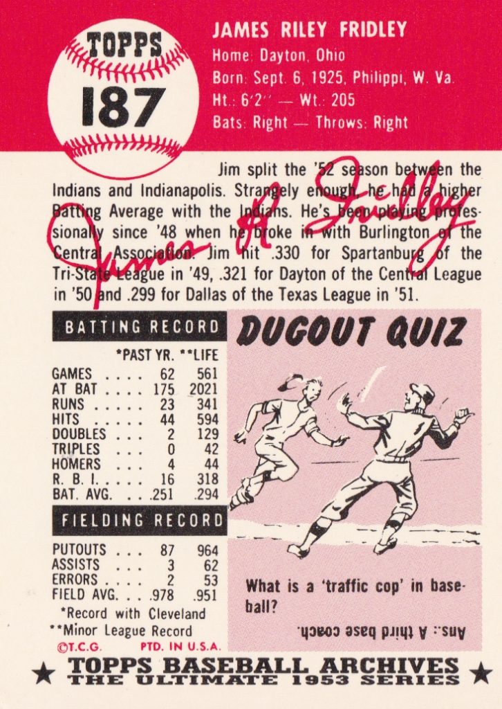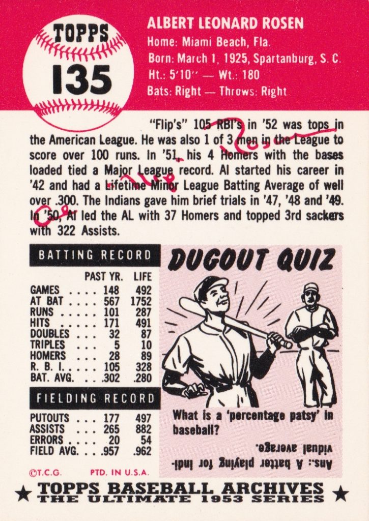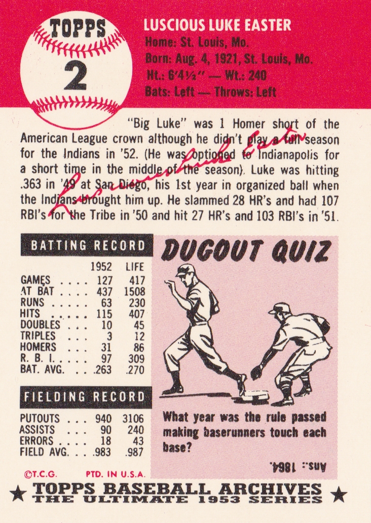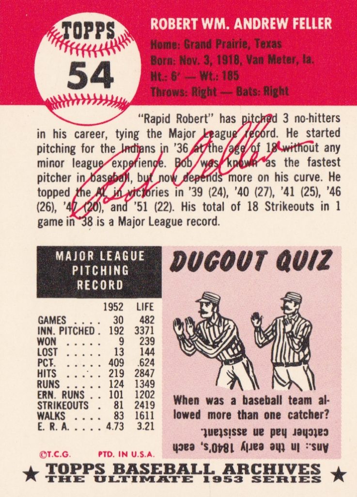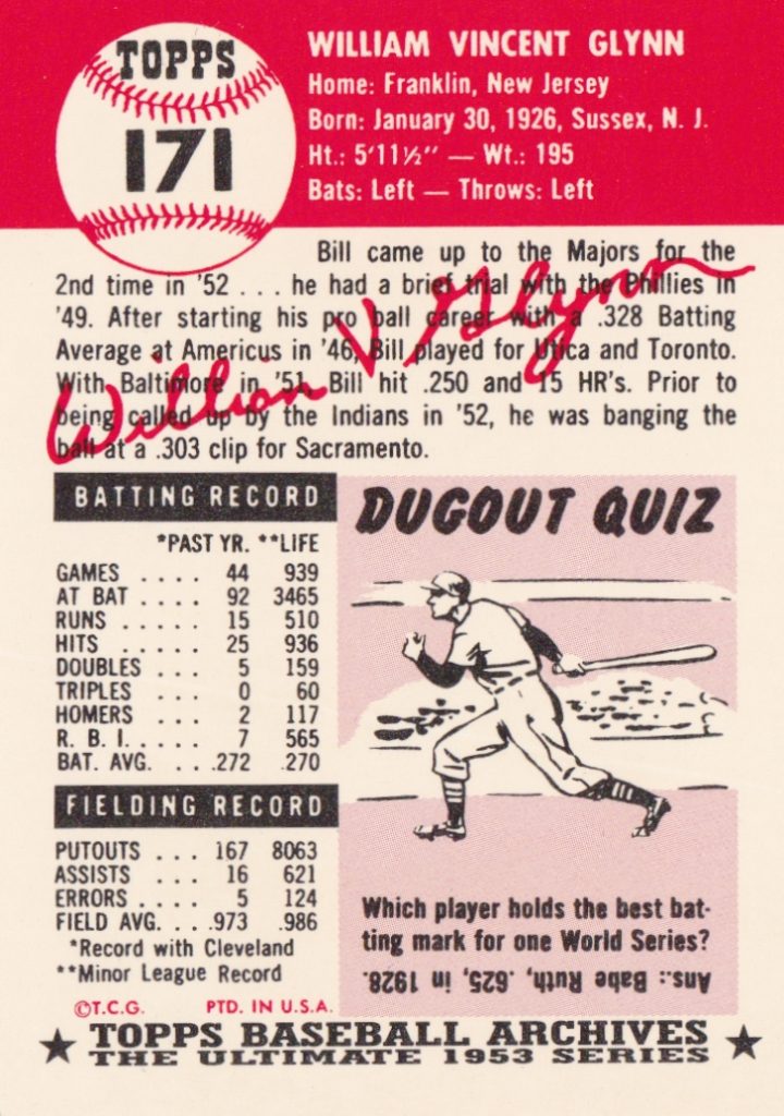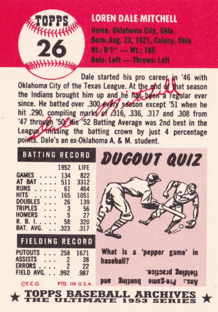 1953 Topps Cleveland Indians Team Set