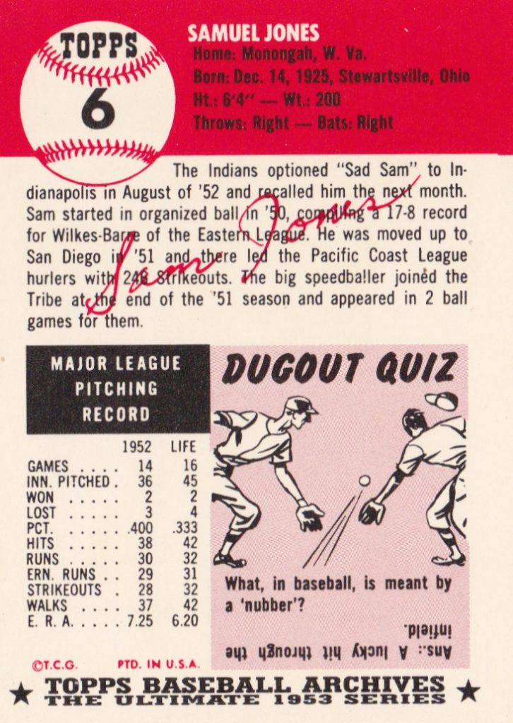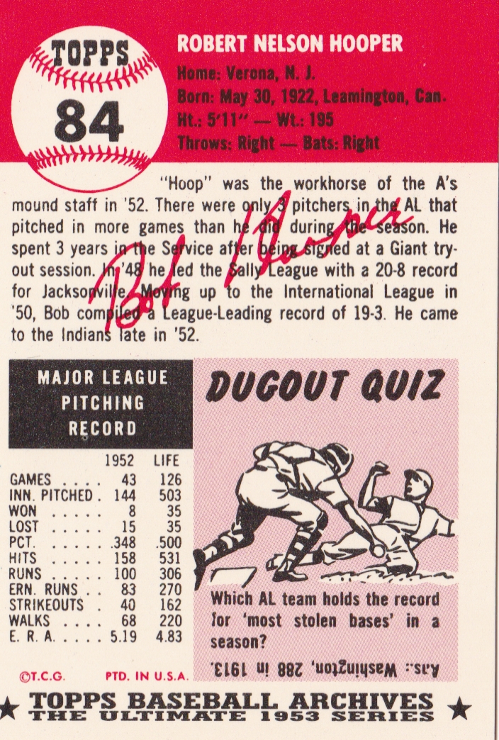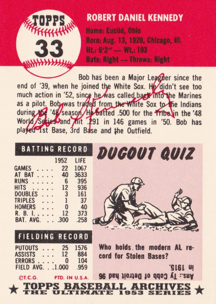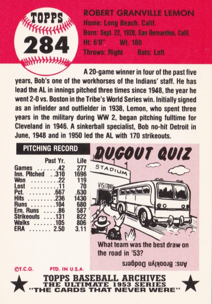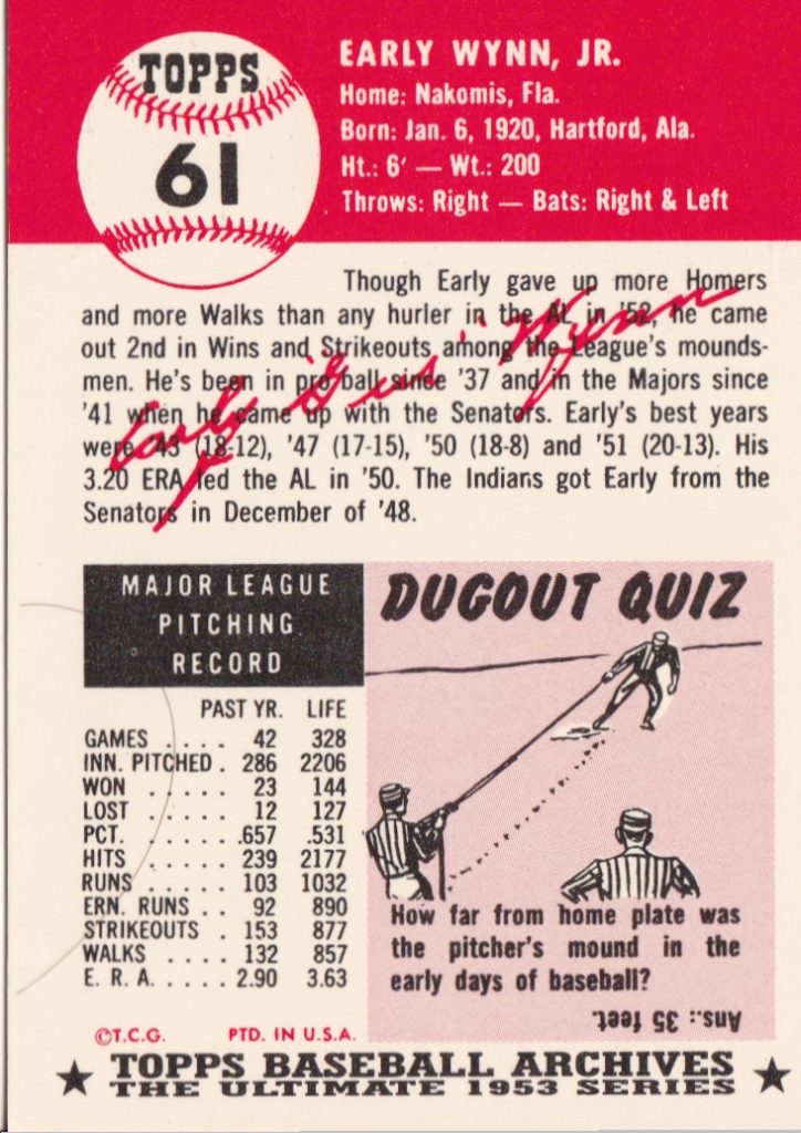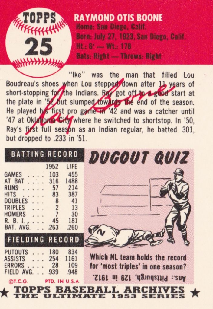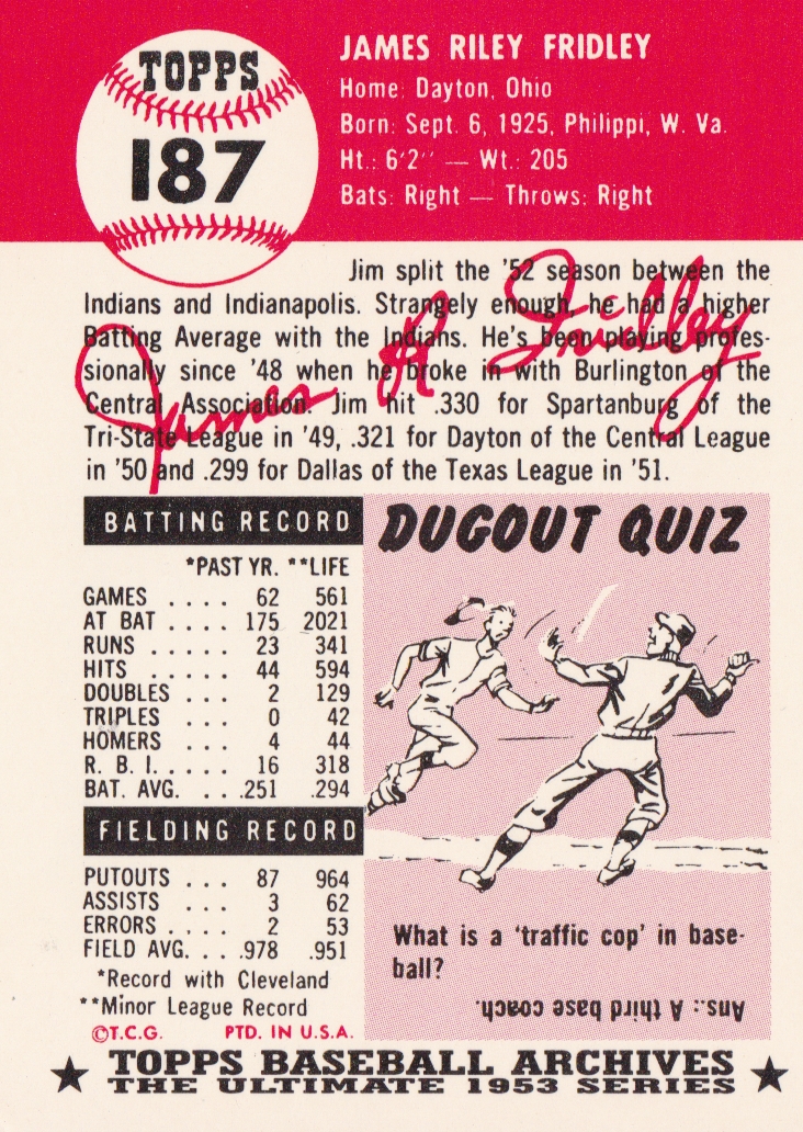 1953 Topps Cleveland Indians Team Set
