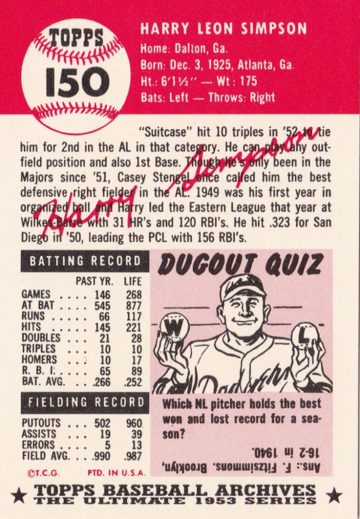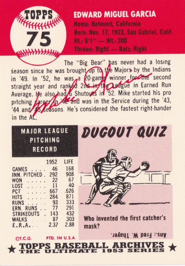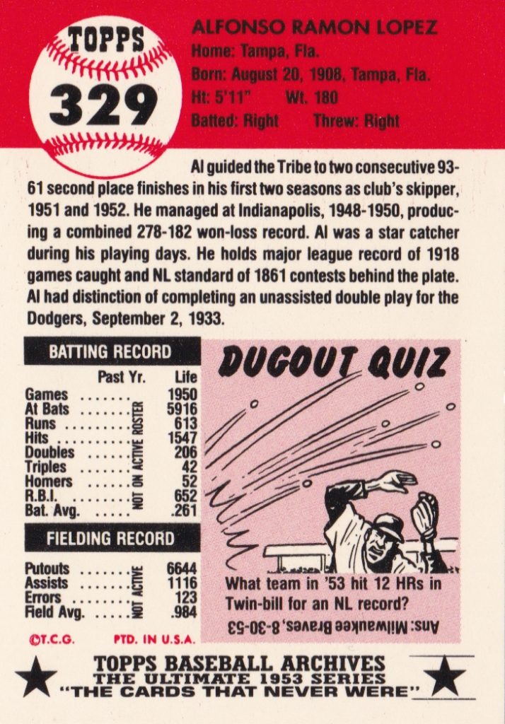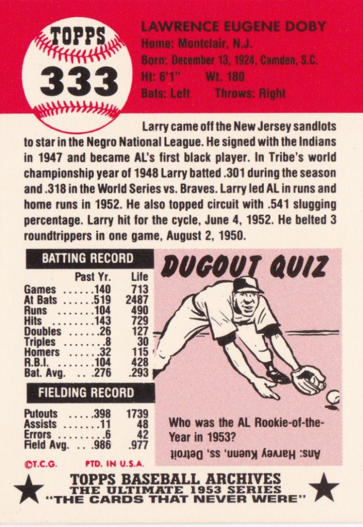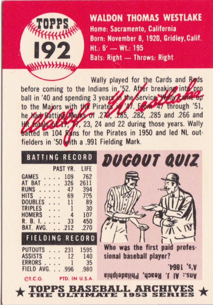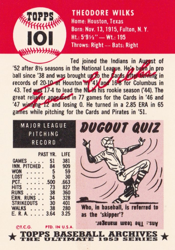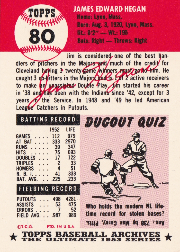 1953 Topps Cleveland Indians Team Set