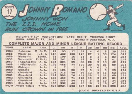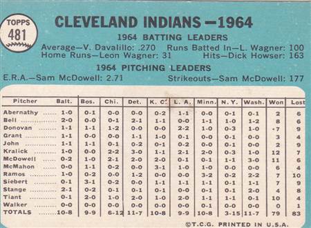 1965 Cleveland Indians Topps Team Set Posted on July 23, 2019 • Posted Under • No Comments #17 Johnny Romano#17 Johnny Romano (b)#76 Sam McDowell#76 Sam McDowell (b)#92 Dich Howser#92 Dich Howser (b)#96 Sonny Siebert#96 Sonny Siebert (b)#105 Chico Salmon#105 Chico Salmon (b)#128 Vic Davalillo#128 Vic Davalillo (b)#145 Luis Tiant#145 Luis Tiant (b)#166 1965 Rookie Stars#166 1965 Rookie Stars (b)#185 Max Alvis#185 Max Alvis (b)#235 Chuck Hinton#235 Chuck Hinton (b)#262 Bud Daley#262 Bud Daley (b)#283 Fred Whitefield#283 Fred Whitefield (b)#301 Birdie Tebbetts#301 Birdie Tebbetts (b)#317 Don McMahon#317 Don McMahon (b)#332 Ted Abernathy#332 Ted Abernathy (b)#348 George Banks#348 George Banks (b)#367 Leon Wagner#367 Leon Wagner (b)#380 Rocky Colavito#380 Rocky Colavito (b)#404 Stan Williams#404 Stan Williams (b)#406 Ralph Terry#406 Ralph Terry (b)#424 Gary Bell#424 Gary Bell (b)#448 Lee Stange#448 Lee Stange (b)#468 Larry Brown#468 Larry Brown (b)#481 Cleveland Indians#481 Cleveland Indians (b)#501 Rookie Stars#501 Rookie Stars (b)#514 Joe Azcue#514 Joe Azcue (b)#535 Jack Kralick#535 Jack Kralick (b)#546 Indians Rookie Stars#546 Indians Rookie Stars (b)#562 Billy Moran#562 Billy Moran (b)#577 Topps AL Rookie Stars#577 Topps AL Rookie Stars (b)#578 Camilo Carreon#578 Camilo Carreon (b)