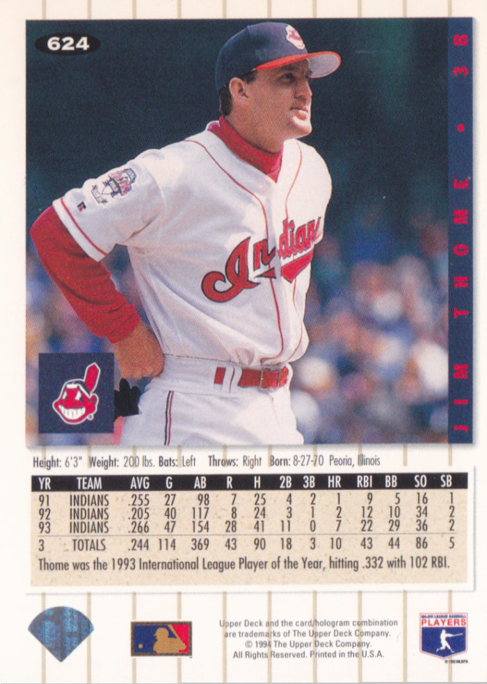 1994 Upper Deck Collectors Choice #624 Jim Thome (b) Posted on July 29, 2018 • Posted Under • No Comments
