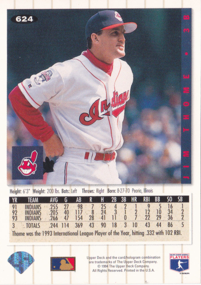 1994 Upper Deck Collectors Choice Silver #624 Jim Thome (b)