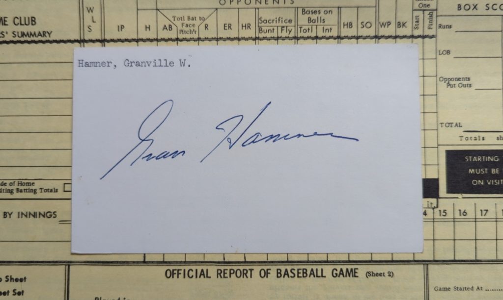 Hamner made the majors in 1944, but would not find regular at-bats until the 1948 season. During his prime, from 1948 to 1957, Hamner hit .263/.305/.386 with 99 HR for the Philadelphia Phillies, good for an 85 OPS+. He was a three-time All-Star and earned MVP votes six times. He was also a starter on the 1950 Phillies squad that would win the National League pennant, though lose to the Yankees in the World Series.