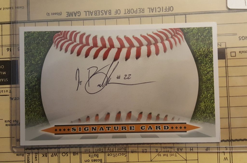 JT Brubaker went to college at the Univerity of Akron–near my hometown–so I was very happy when he was drafted by the Pirates in the 6th round of the 2015 draft. I wrote to him in college but never got anything, but I was able to get him in 2015 while he was in the low minors. I was over the moon to get it.