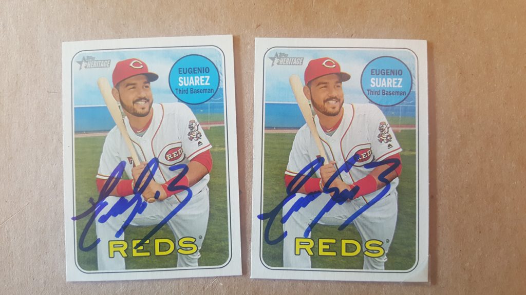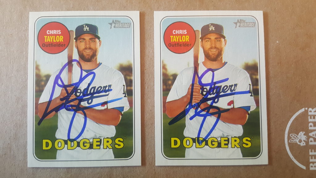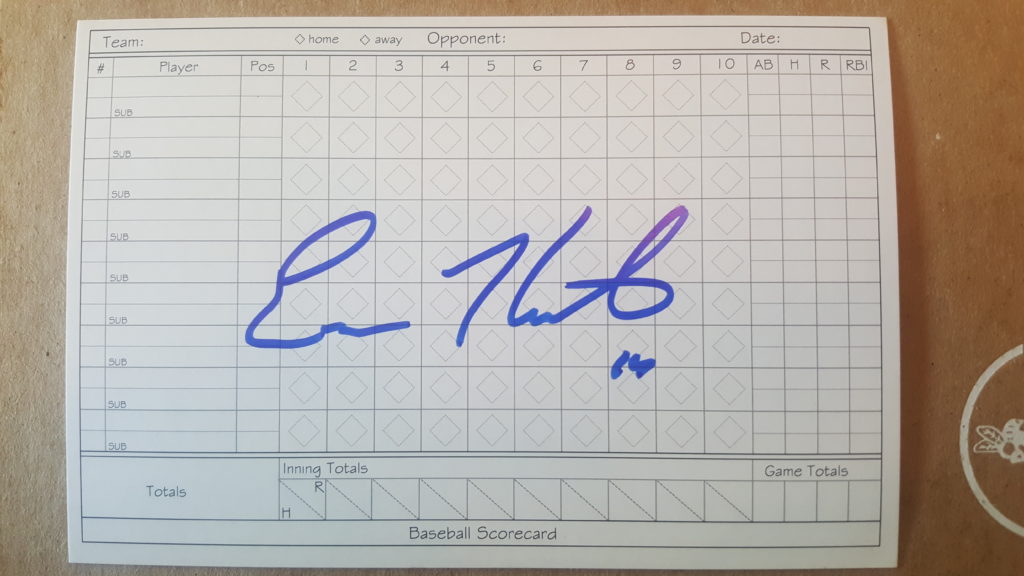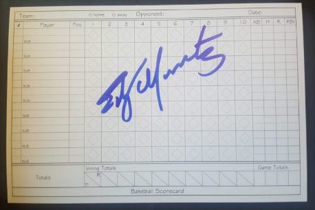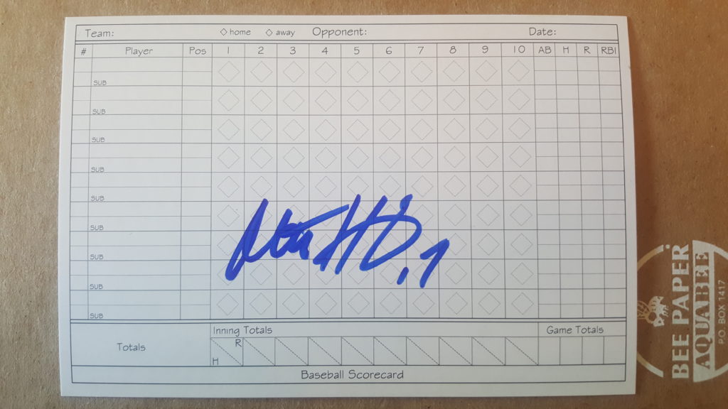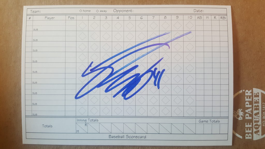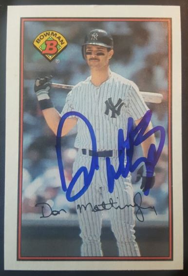 Don Mattingly. Originally I was not going to go after him, but the night before the event I noticed by old factory set of of 1989 Bowman sitting on my shelf. I figured Mattingly was in. Found his card and thought it would work signed. I generally don’t like to get cards signed that have a facsimile autograph already on them, but I assumed he would sign above it and look fine. I was right, and it did.