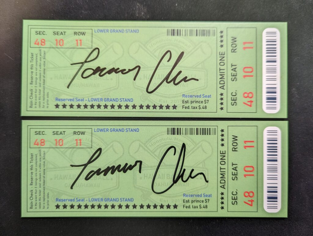 Another very cool autograph from the Hawaii Baseball Association 2023 Fall Showcase, St. Louis shortstop Tanner Chun (2024). Chun is one of the top bats from Hawaii’s 2024 class, as well as one of the Top 500 prep prospects in the country. In addition, he is committed to one of the best D1 baseball schools in the country, Tulane. Give his talent, and level of exposure he will get playing in the AAC, I imagine plenty of major league teams will be watching him when draft time rolls around. Fun fact: if Chun does get drafted out of Tulane, he will be the first Hawaii-born player to get drafted out of that program.