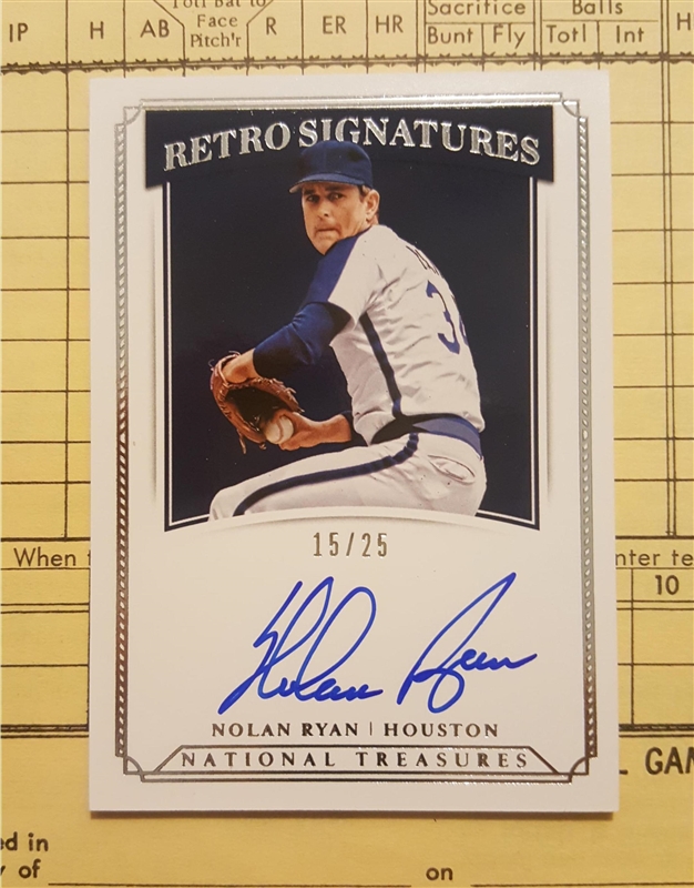 2019 National Treasures Nolan Ryan Retro Signatures. I actually don’t have a Nolan Ryan autograph in my collection, so this is kind of exciting.