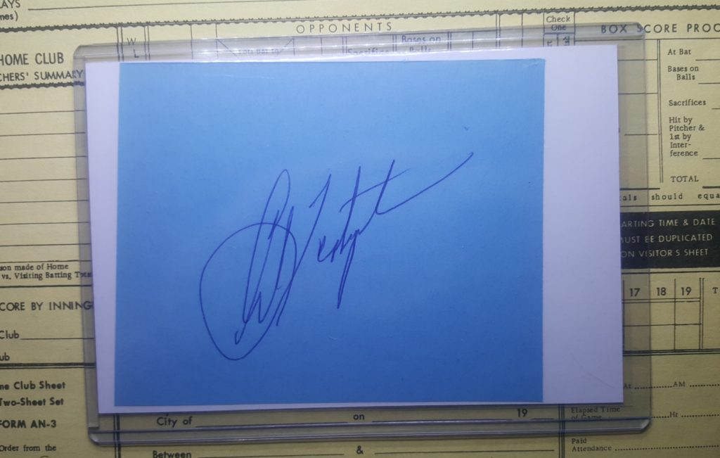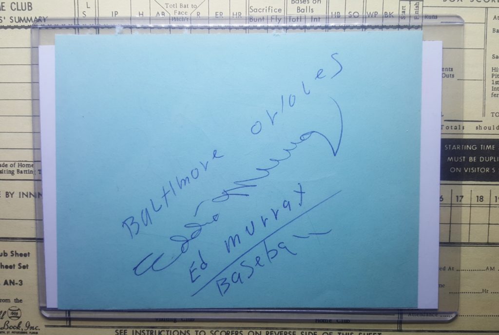 I was pretty jazzed to get these Carl Yastrzemski and Eddie Murray autographs. Both are signed on what looks like autograph book paper, and in both cases with a bold, blue ballpoint pen. There is a certain type of ballpoint pen–and I have no idea the science behind it–that when it’s signed on this type of paper does not feather or bleed. It just stays clean and bold. I love it. The biggest issue is normally the quality of the cut (since it was ripped or cut out of a book), imprints, or bleed from autographs from other pages in the autograph book, or in the case of the Murray autograph, people write stuff on the page. But I will get over it since the autograph is still nice. The other nice thing about autographs like this is that they normally come at a pretty good price. They are hard to search for on eBay, which helps keep down the competition.