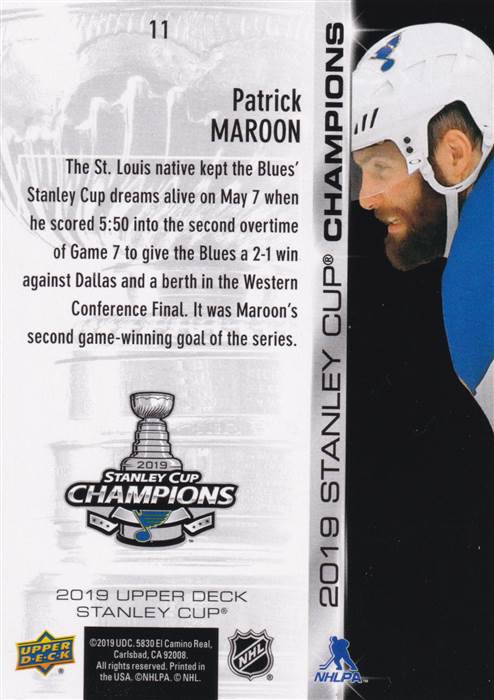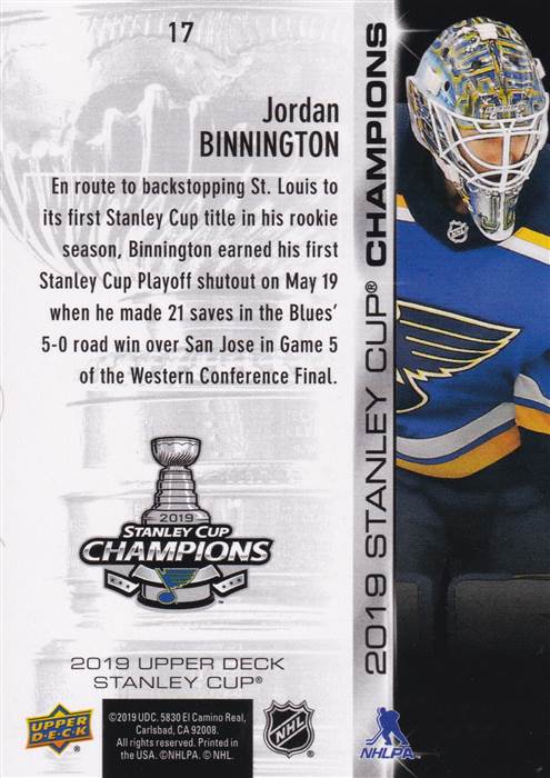 2018-2019 St. Louis Blues Upper Deck Stanley Cup Commemorative Set
