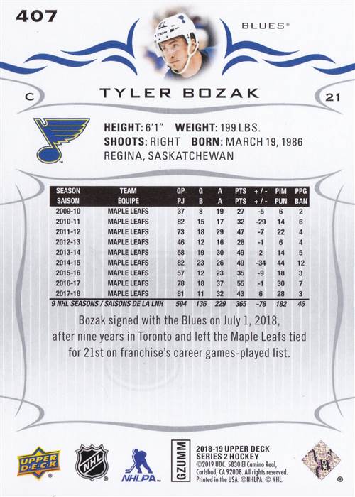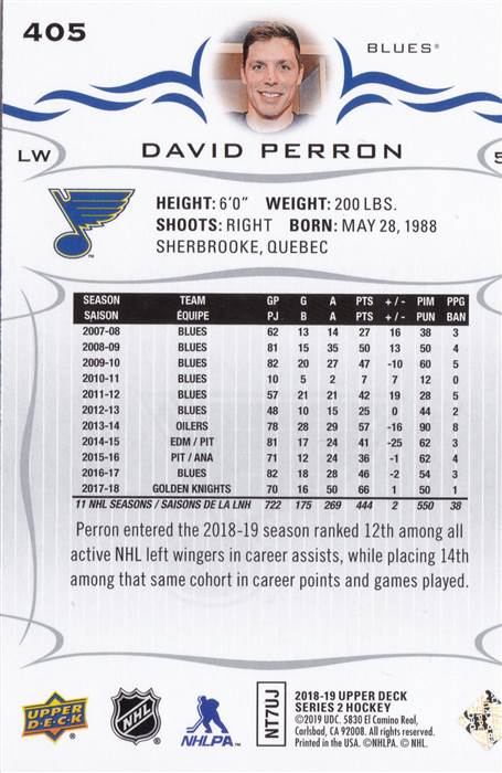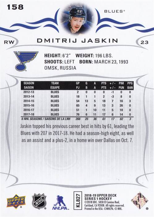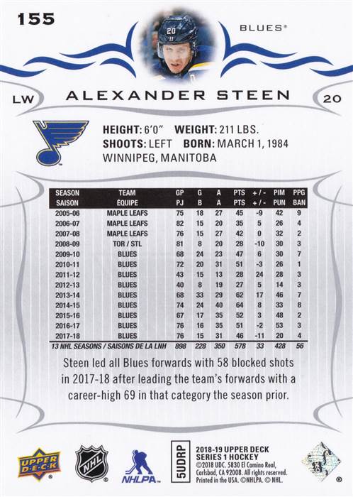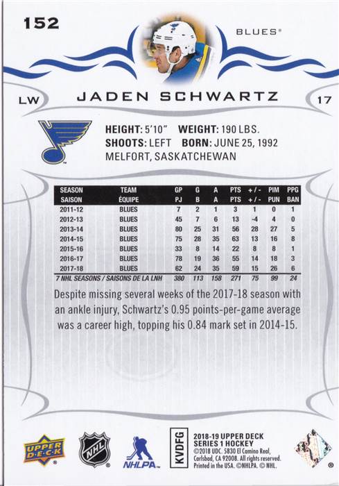 2018-2019 St. Louis Blues Upper Deck Team Set
