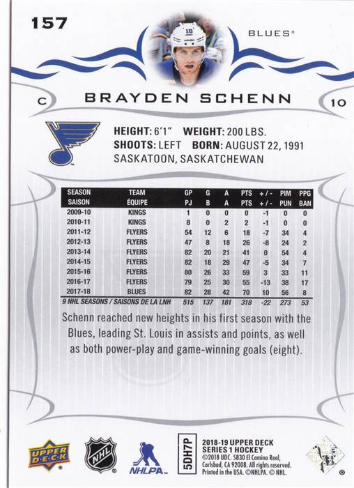 Brayden Schenn 18-19 UD SP Authentic