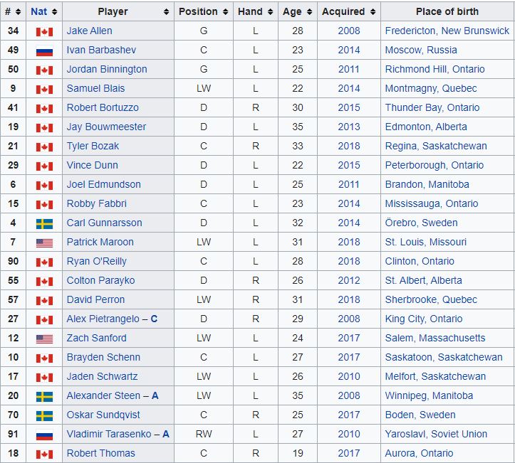 2019 St. Louis Blues Roster