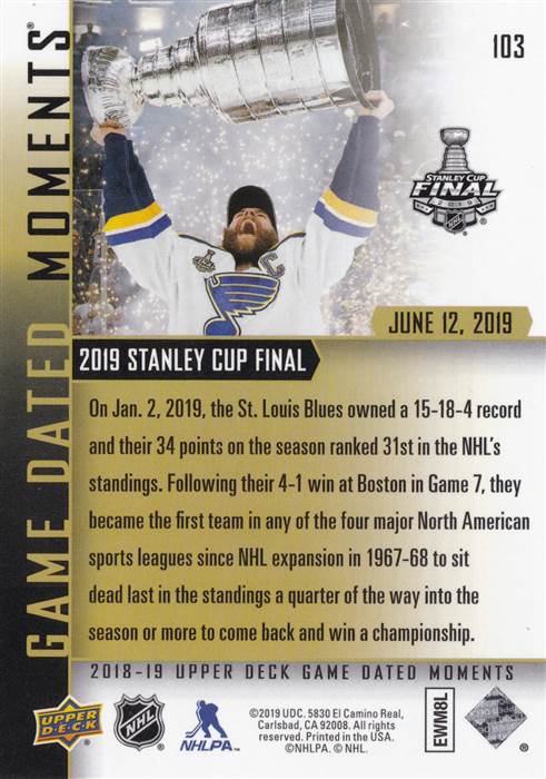 18-19 UD Dated Moments #103 Blues Win