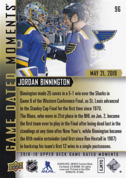18-19 UD Dated Moments #96 Binnington