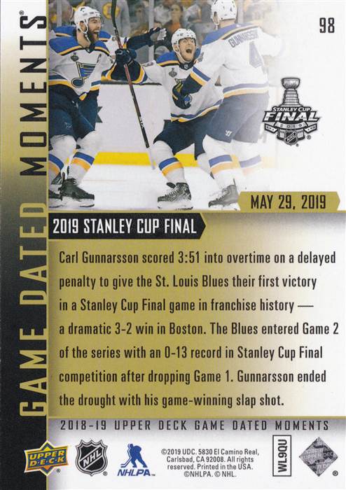 18-19 UD Dated Moments #103 Blues Win (b)