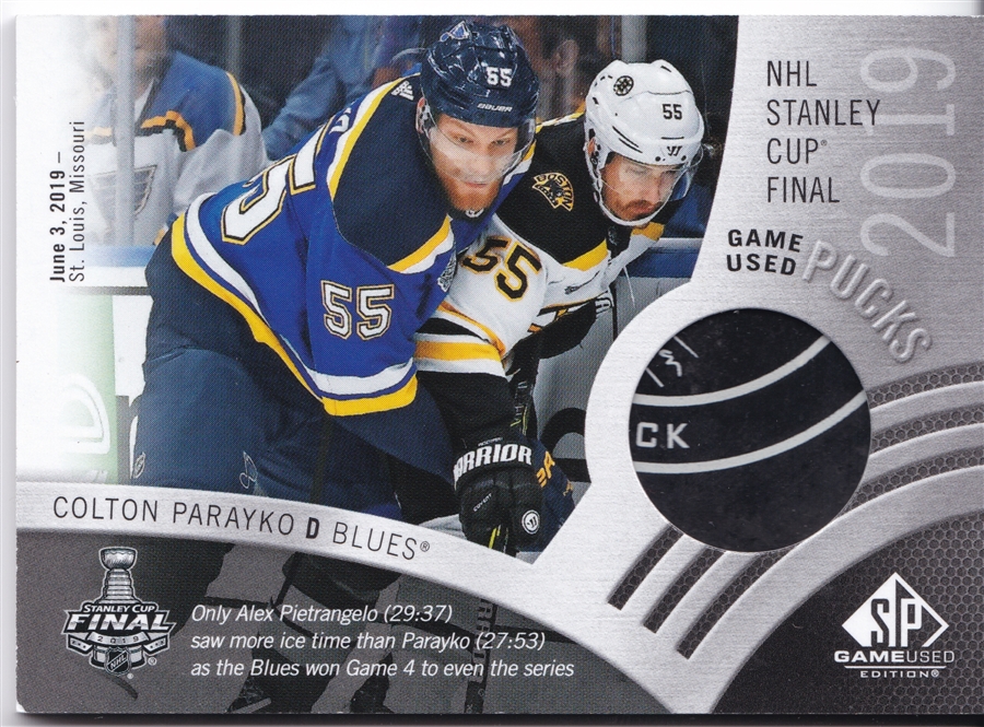 2019 NHL Stanley Cup Final Game Used Pucks Colton Parayko