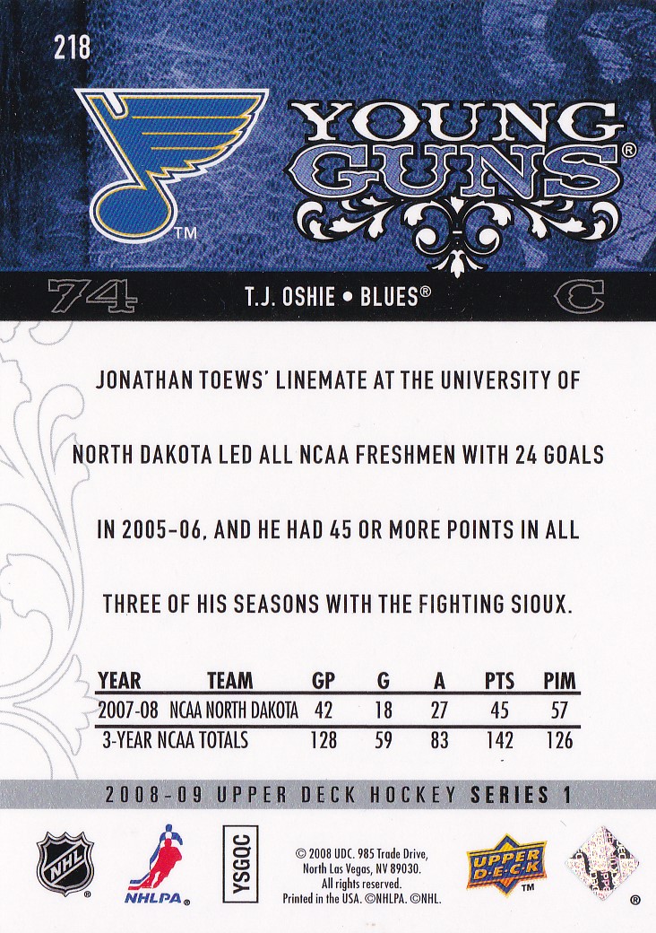 2008-09 Upper Deck #218 T.J. Oshie