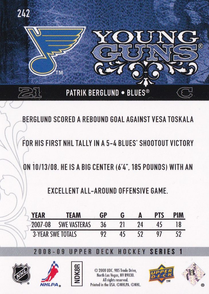 2008-09 Upper Deck #242 Patrik Berglund