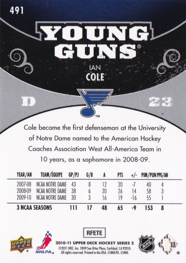 2010-11 Upper Deck #491 Ian Cole (b)