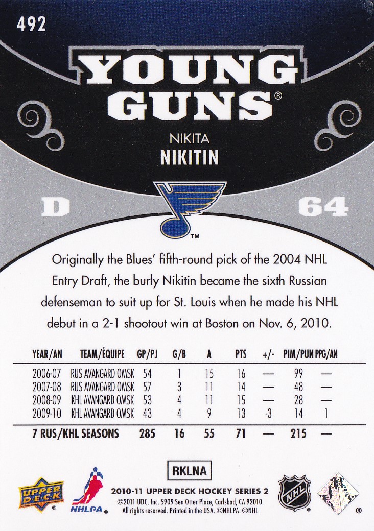 2010-11 Upper Deck #492 Nikita Nikitin