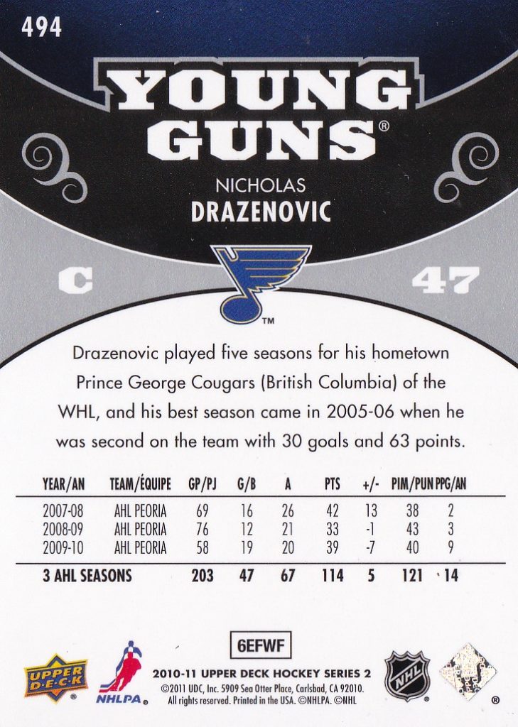 2010-11 Upper Deck #494 Nicholas Drazenovic