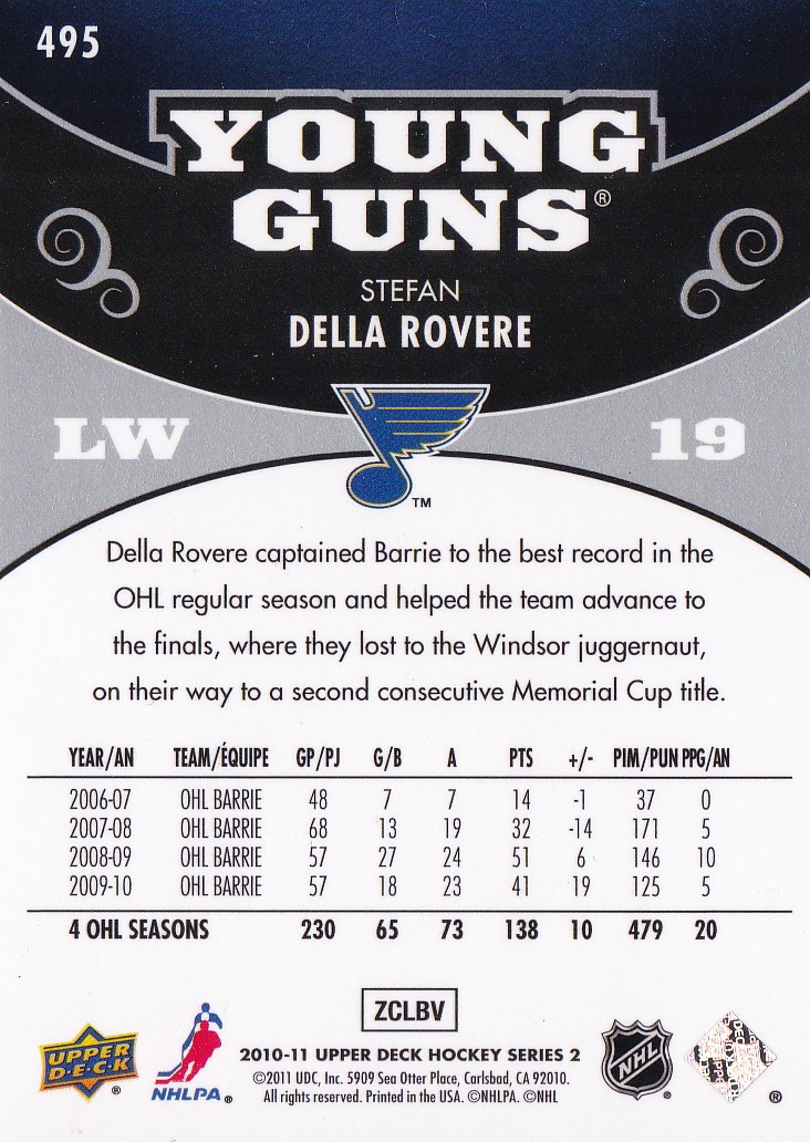 2010-11 Upper Deck #495 Stefan Della Rovere (b)
