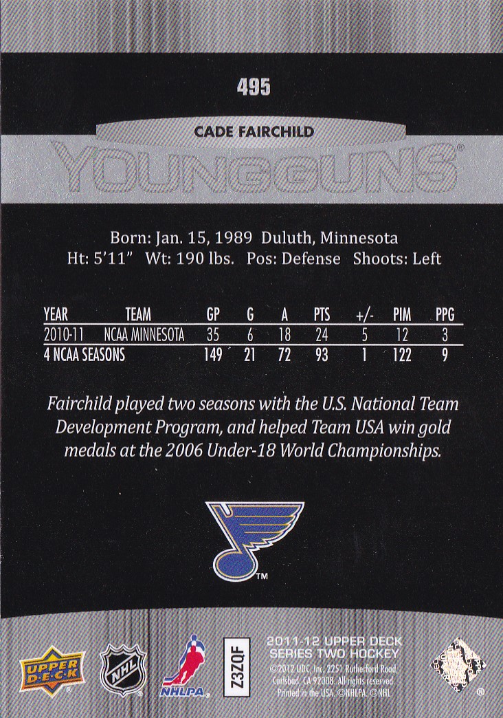 2011-12 Upper Deck #495 Cade Fairchild