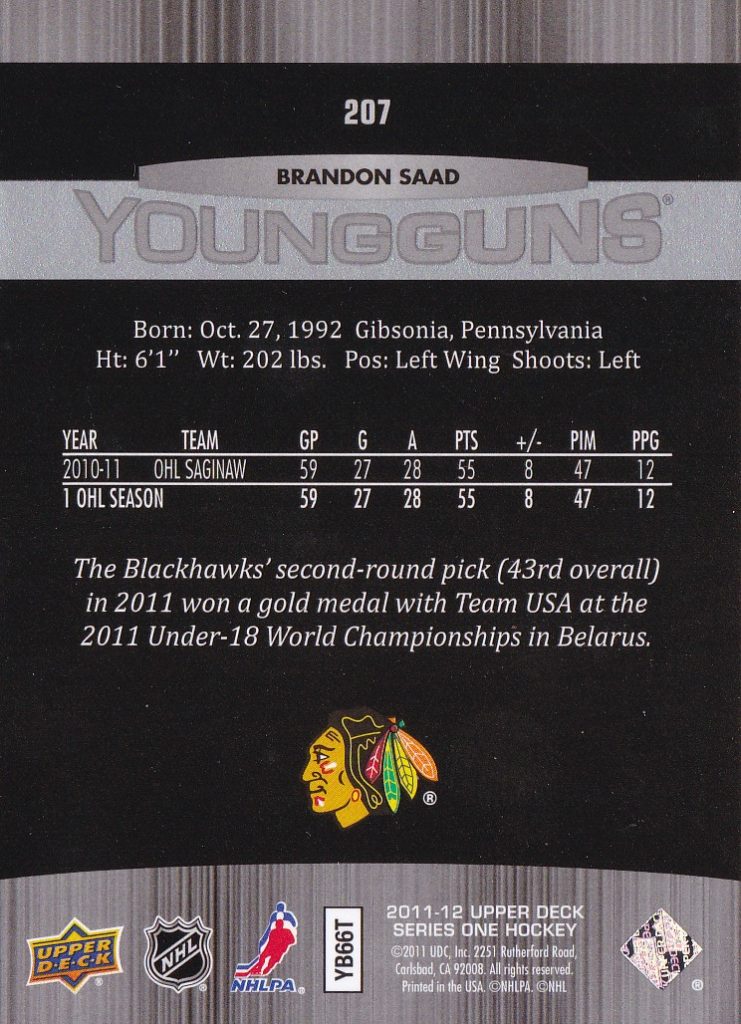 2011-12 Upper Deck#207 Brandon Saad (b)