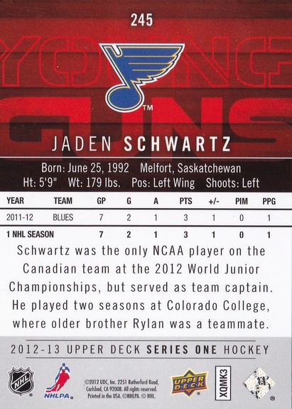2012-13 Upper Deck #245 Deck Jaden Schwartz