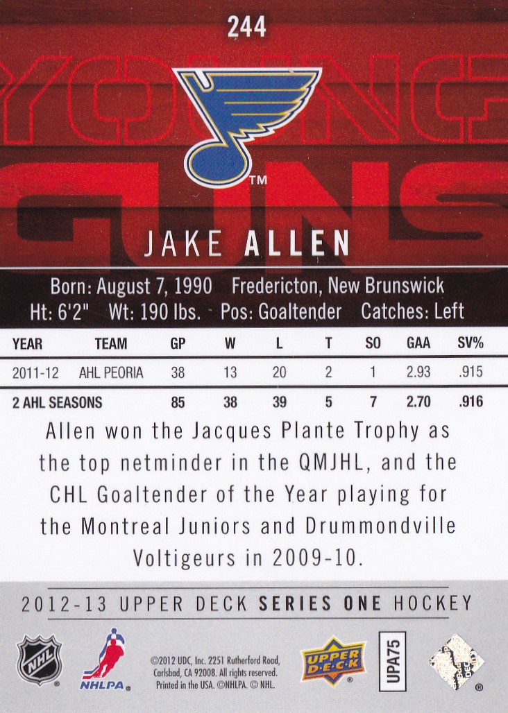 2012-13 Upper Deck #244 Jake Allen (b)