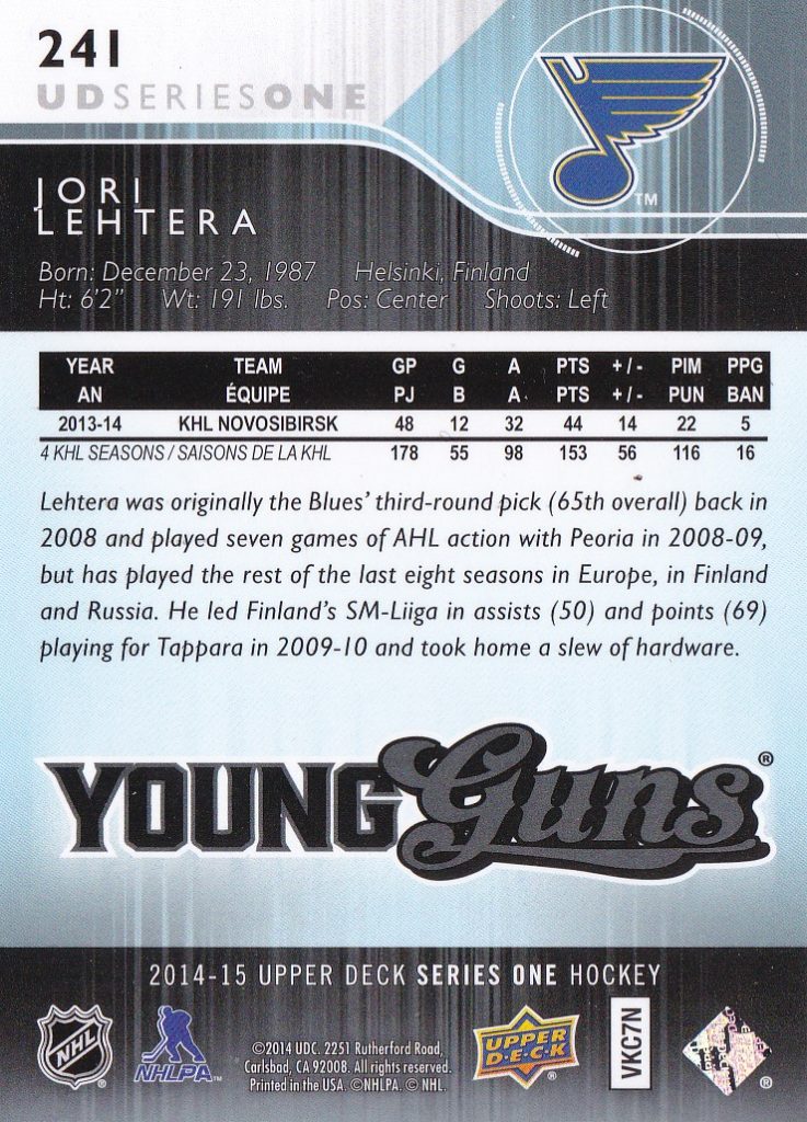 2014-15 Upper Deck #241 Jori Lehtera