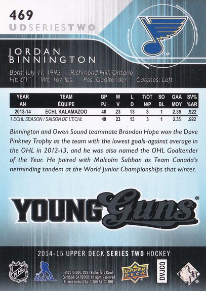 2014-15 Upper Deck #469 Jordan Binnington
