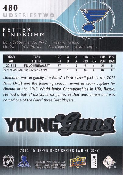 2014-15 Upper Deck #480 Petteri Lindbohm