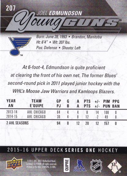 2015-16 Upper Deck #207 Joel Edmundson