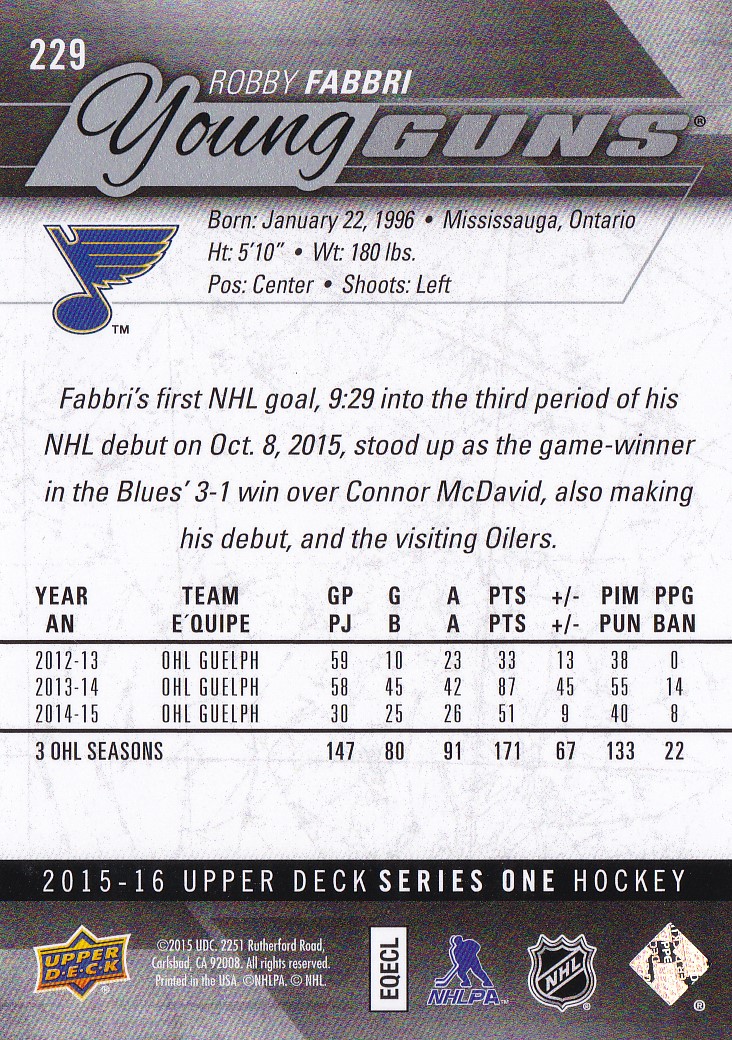 2015-16 Upper Deck #229 Robby Fabbri (b)