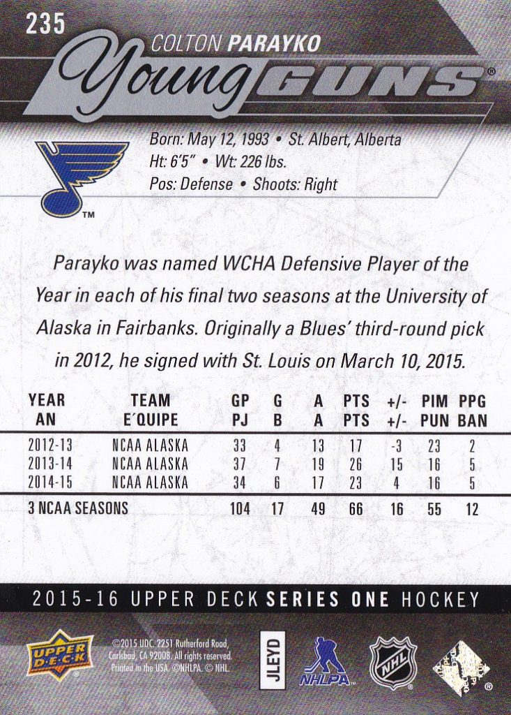 2015-16 Upper Deck #235 Colton Parayko (b)