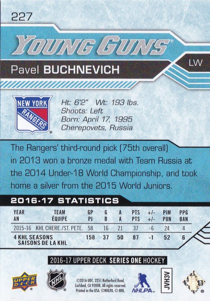 2016-17 Upper Deck #227 Pavel Buchnevich (b)
