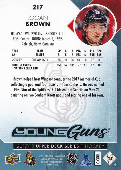 2017-18 Upper Deck #217 Logan Brown