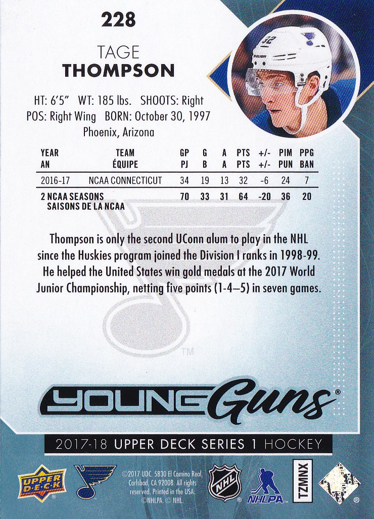 2017-18 Upper Deck #228 Tage Thompson
