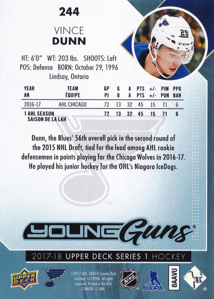 2017-18 Upper Deck #244 Vince Dunn (b)