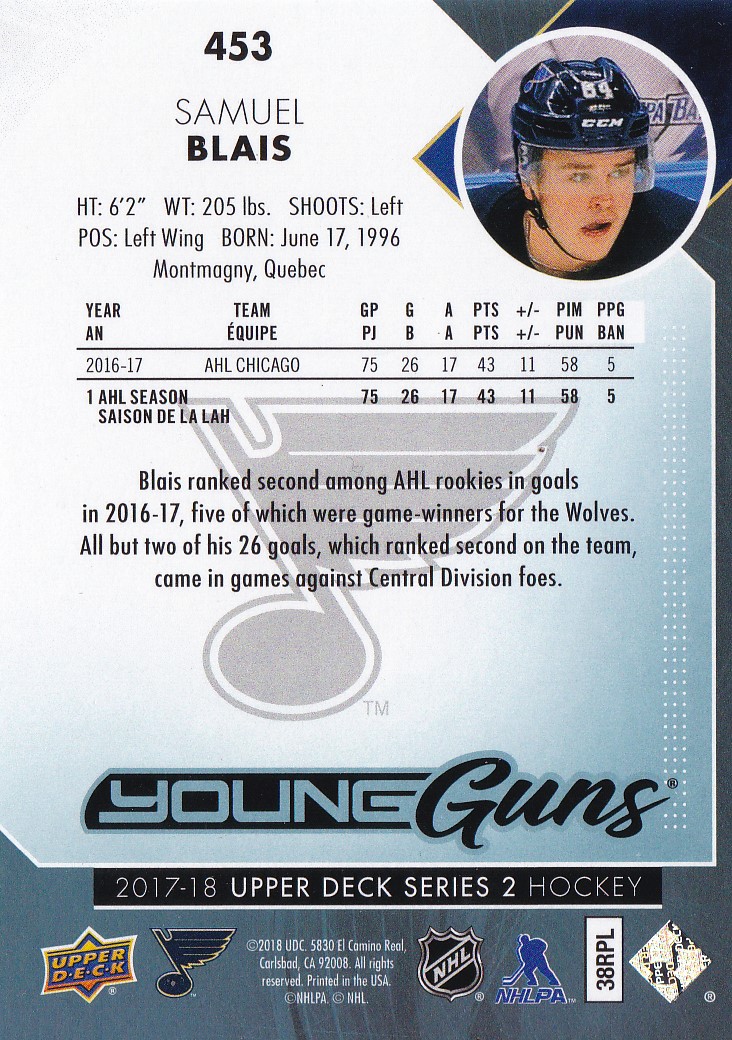 2017-18 Upper Deck #453 Samuel Blais