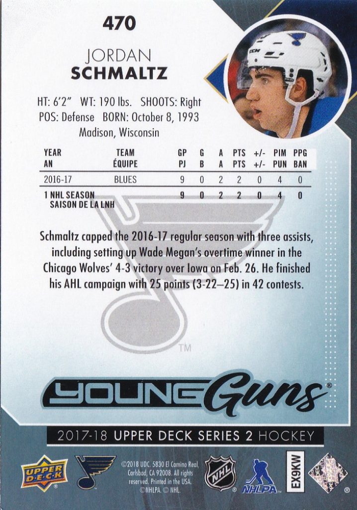2017-18 Upper Deck #470 Jordan Schmaltz (b)