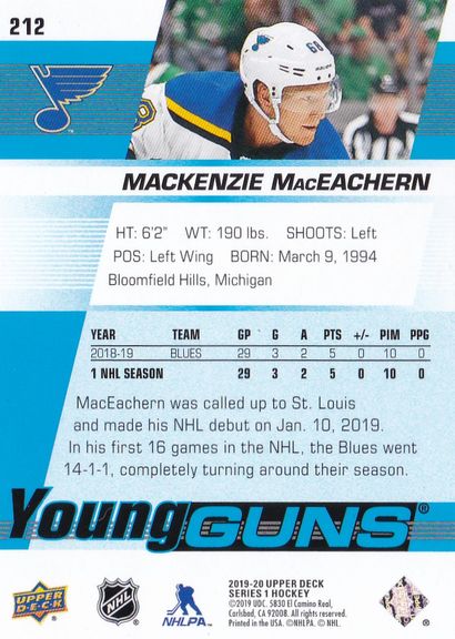 2019-20 Upper Deck #212 Mackenzie MacEachern #212 (b)